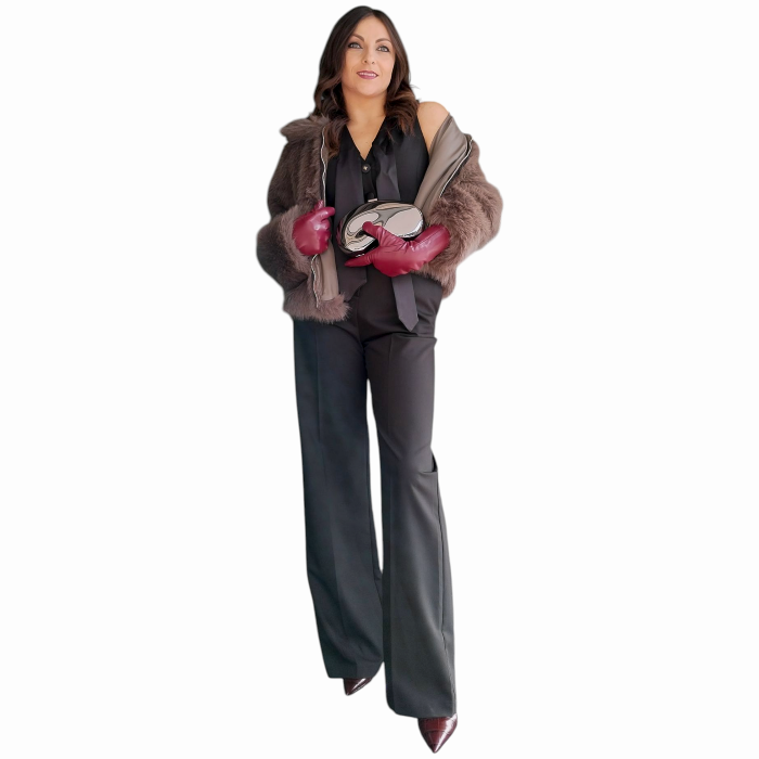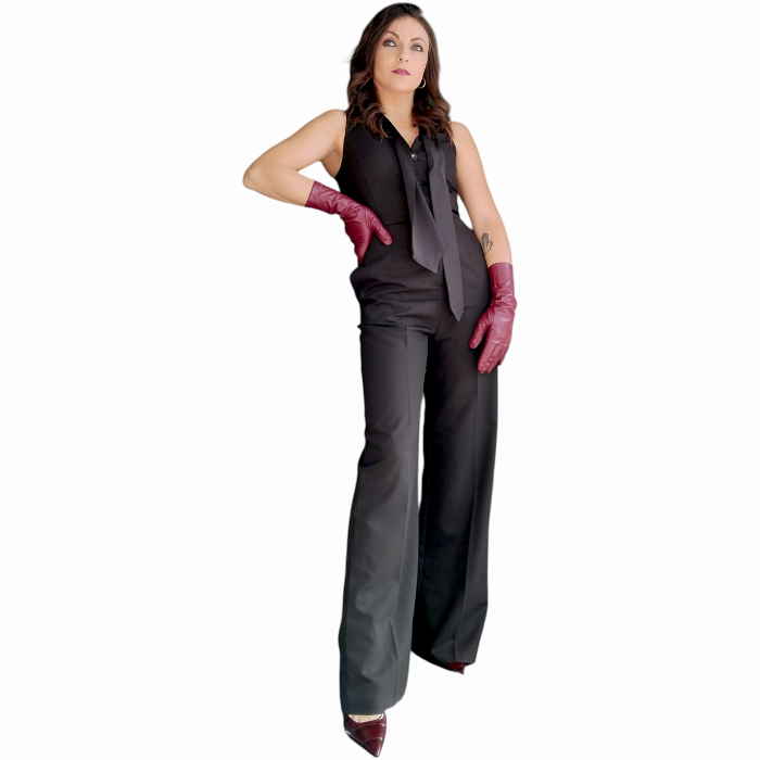 Tuta donna IMPERIAL intera elegante con cravattino effetto satin e scollo a V