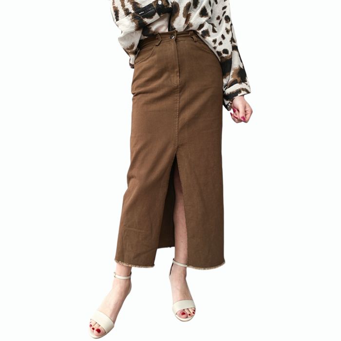 Gonna donna SAIPH lunga 100% cotone con spacco anteriore e orlo sfilacciato