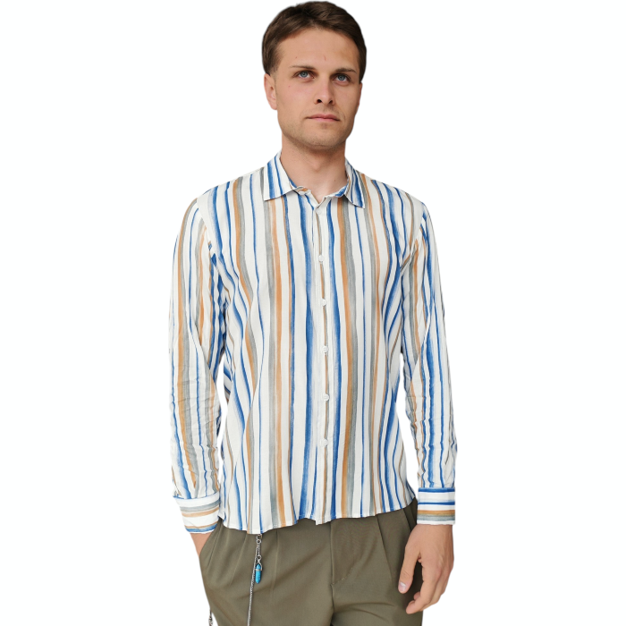 Camicia uomo IMPERIAL 100% viscosa fantasia a righe collo classico (M - Bianco/blu)