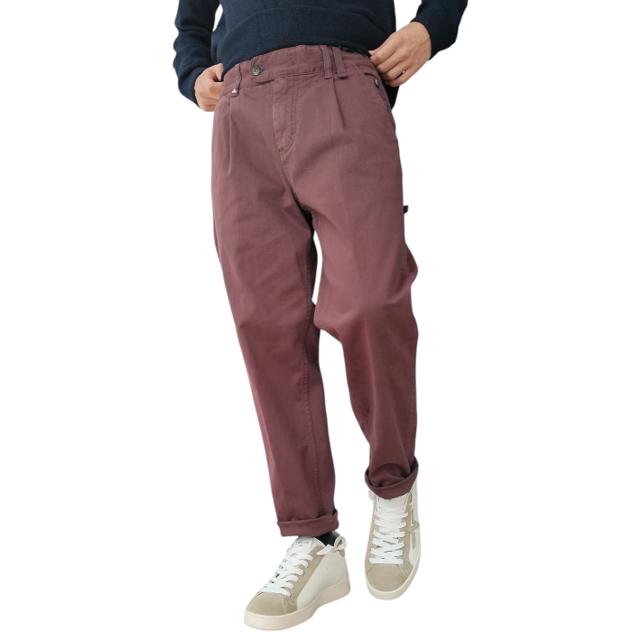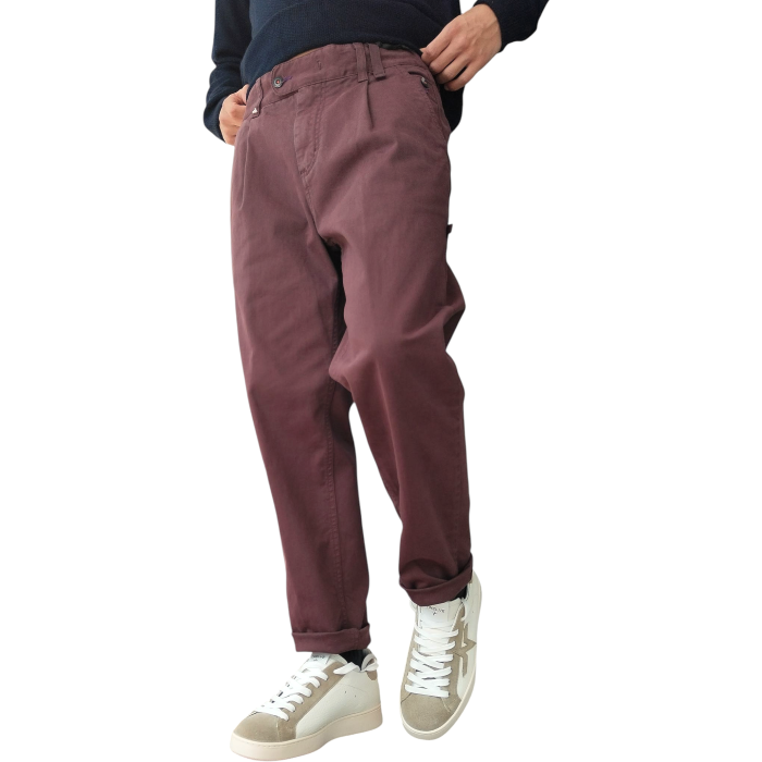 Pantalone BERNA cropped regular fit con pinces anteriori e tasche asimettriche posteriori (44 - Melanzana)