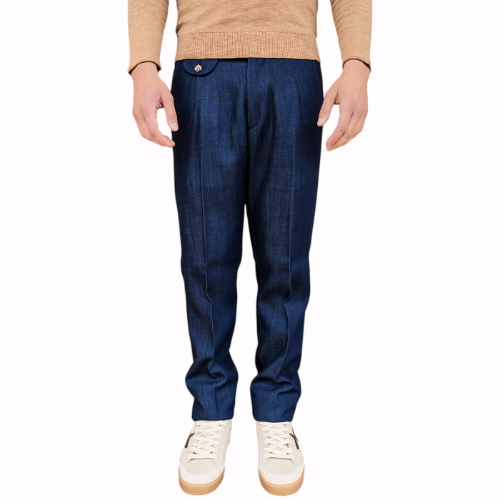 Pantalone uomo IMPERIAL 100% tencel effetto denim regular fit con pinces (48 - Denim scuro)