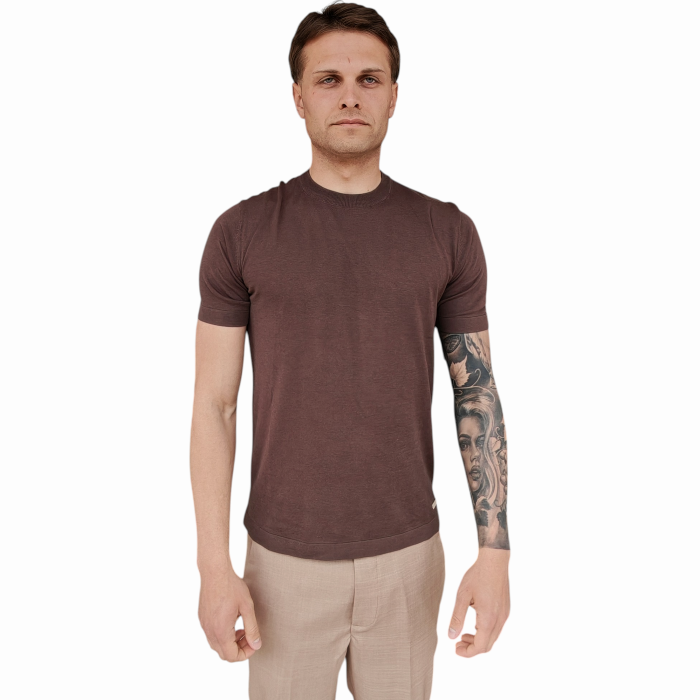 Maglia uomo GIANNI LUPO girocollo manica corta misto tencel/cotone/seta (S - Caffè)