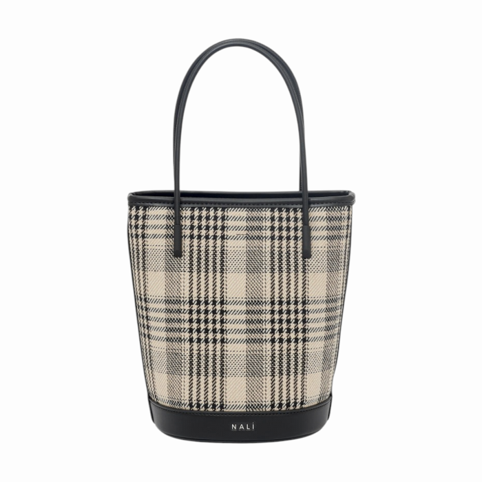 Borsa donna NALI' mod. Kasia Bucket secchiello in tessuto tramato dettagli ecopelle (TAGLIA UNICA - Nero/Beige)