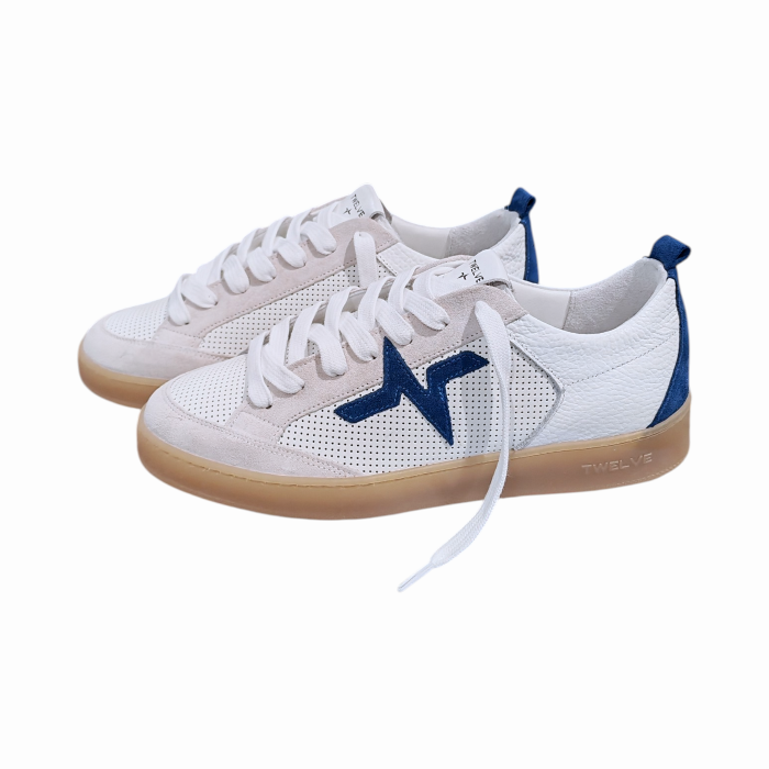 Sneakers uomo TWELVE Jump 47 artigianali in vera pelle microforata e plantare memory (43 - Bianco/blu)