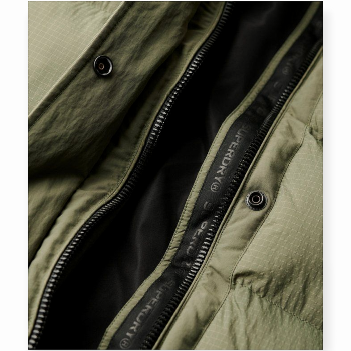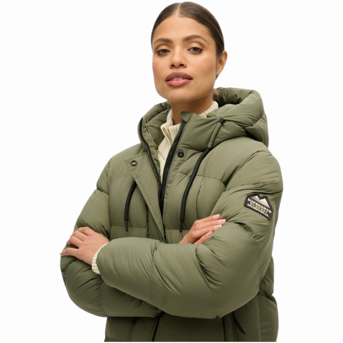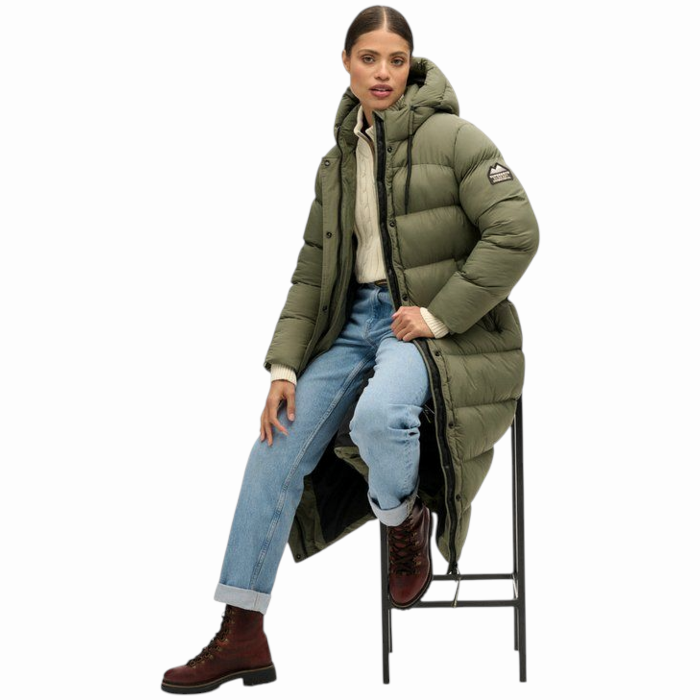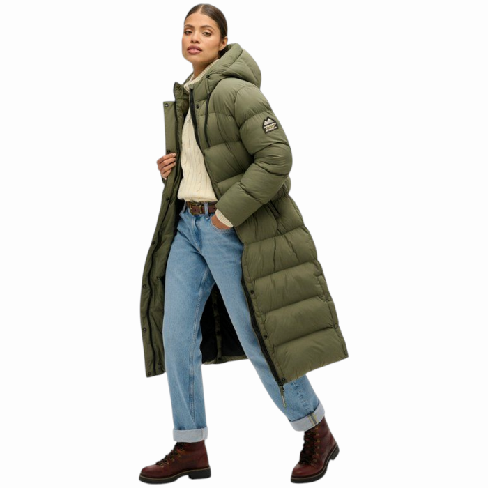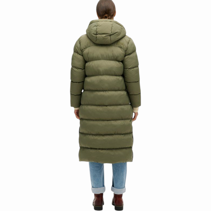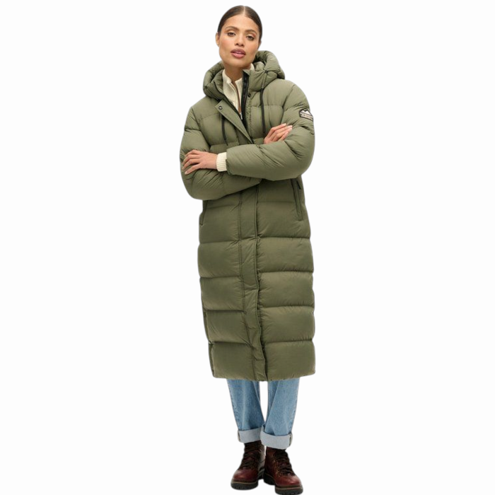 Giubbotto donna SUPERDRY piumino lungo tessto ripstop no strappo (S - Verde oliva)
