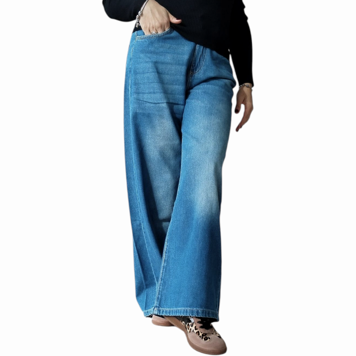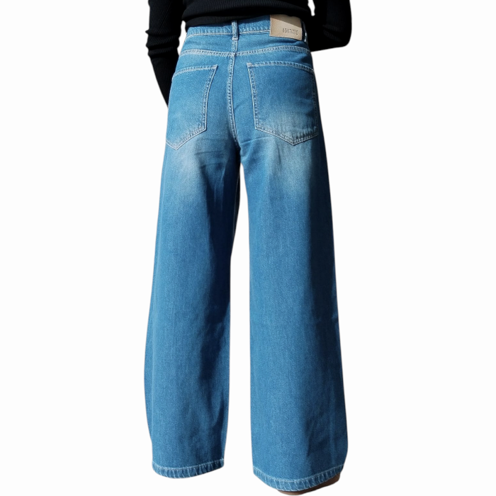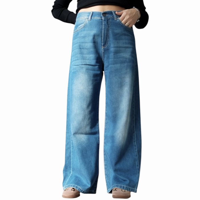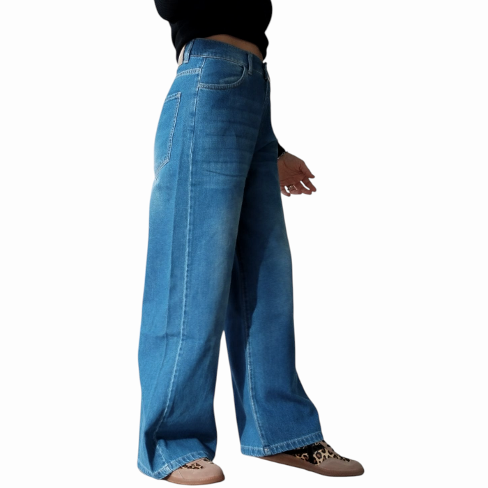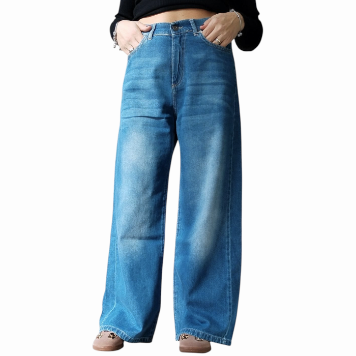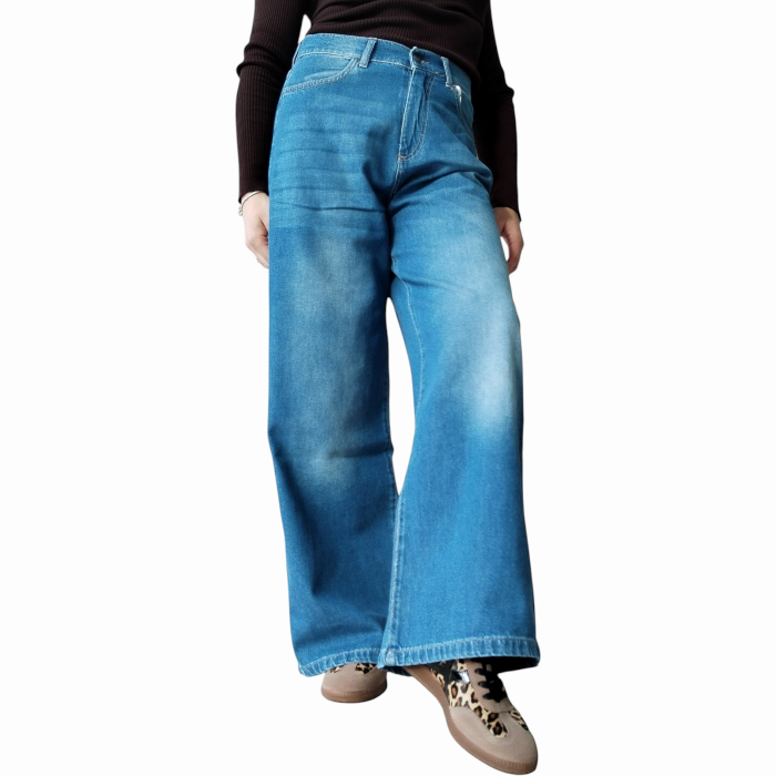 Jeans donna KONTATTO gamba ampia flare baggy fit 100% cotone (44 - Denim intermedio)