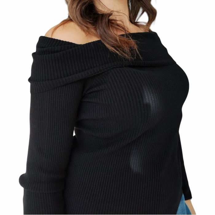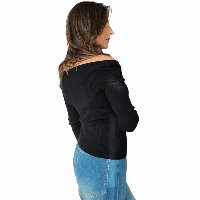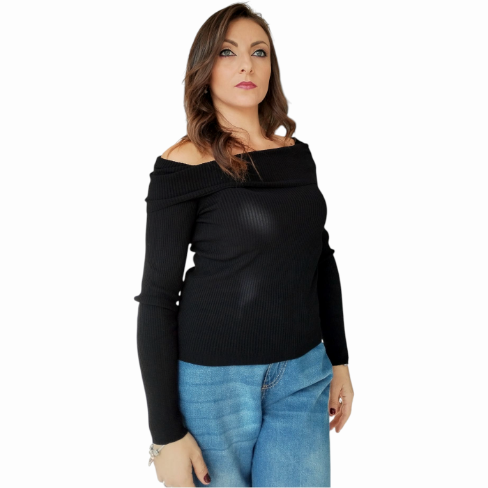 Maglia donna KONTATTO modello Shiffer a micro costine (TAGLIA UNICA - Nero)