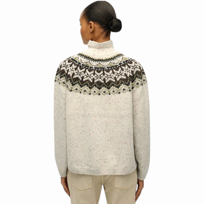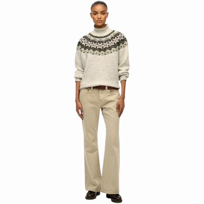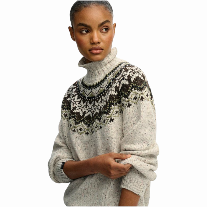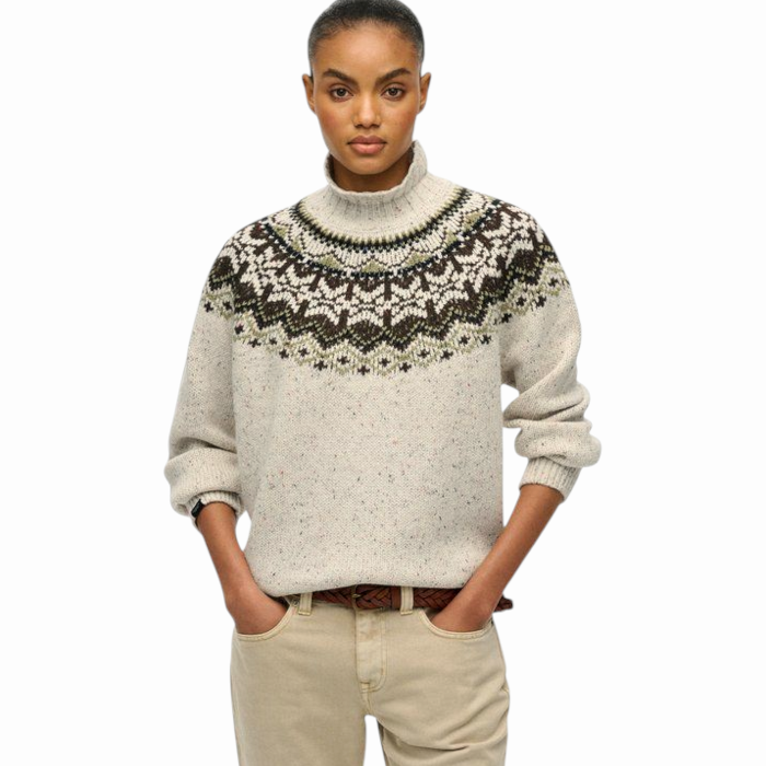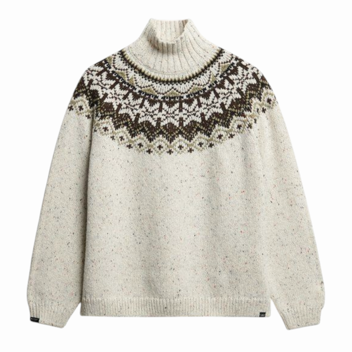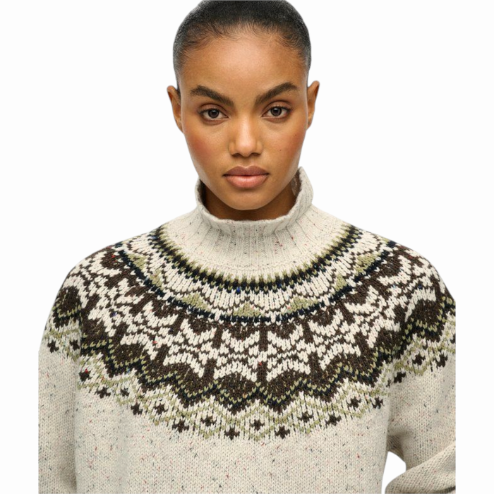 Maglia donna SUPERDRY comfort fit misto lana collo alto con motivo Fair Isle (M - Off white)