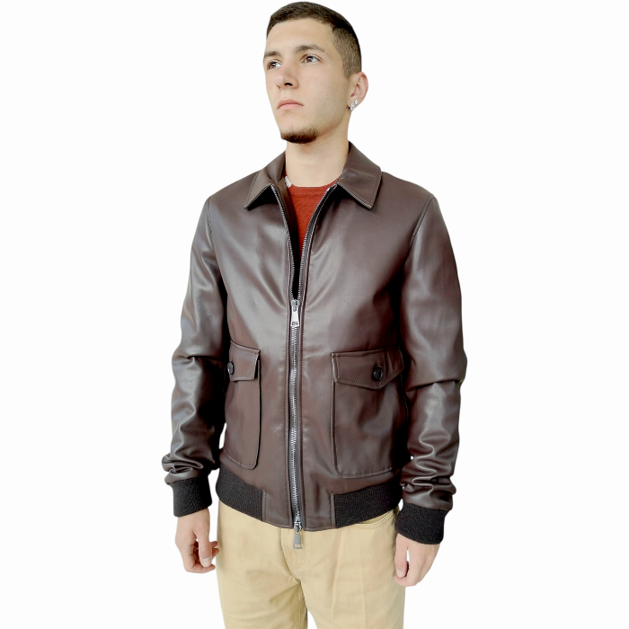 Giubbotto uomo BERNA ecopelle effetto nappa modello aviatore con colletto