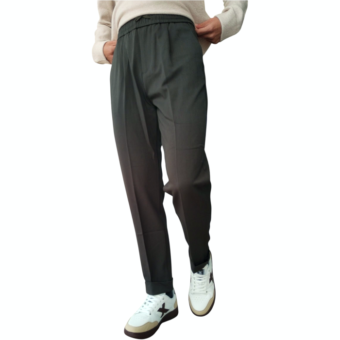 Pantalone uomo GIANNI LUPO slim fit cropped con colulisse e risvoltino (M - Verde militare)