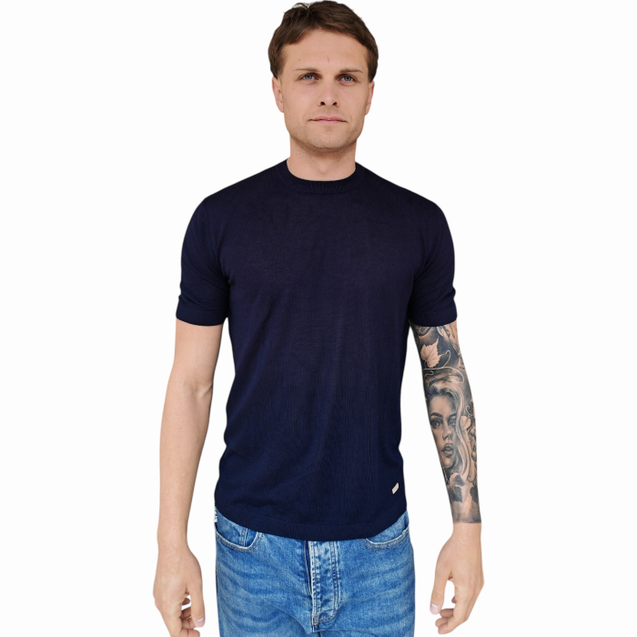 Maglia uomo GIANNI LUPO girocollo manica corta misto tencel/cotone/seta (L - Blu)