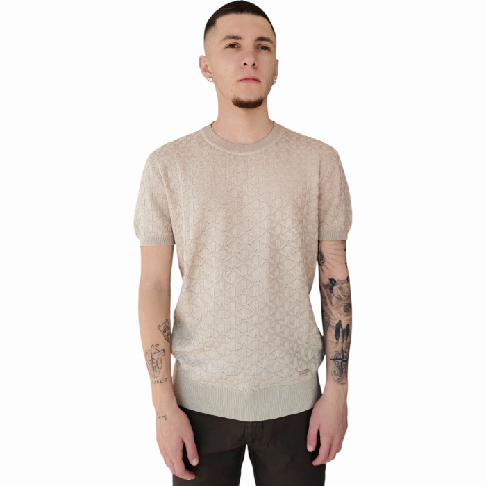 T-shirt uomo GIANNI LUPO in magliana misto viscosa con pattern in rilievo (S - Beige)