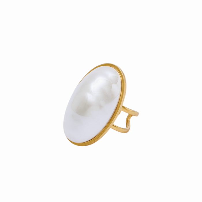 Anello donna NALI' in acciaio inox con perla bianca ovale (TAGLIA UNICA - Bianco)