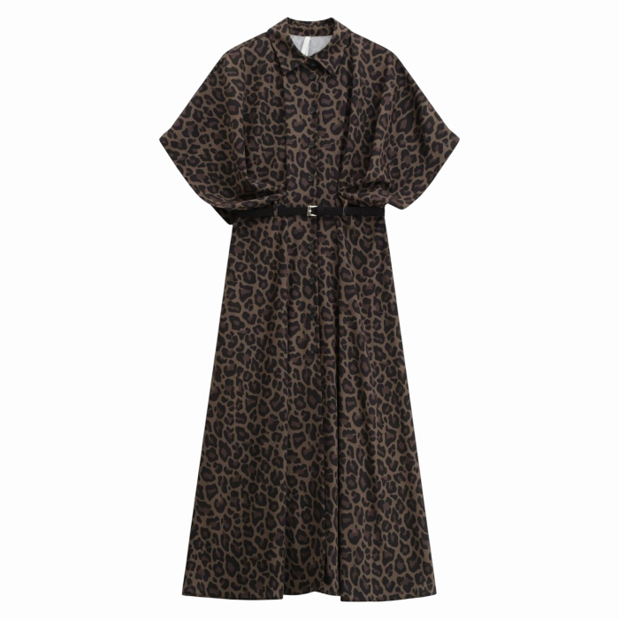Abito donna IMPERIAL lungo stampa animalier con cintura e maniche corte ampie
