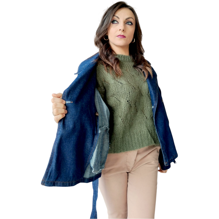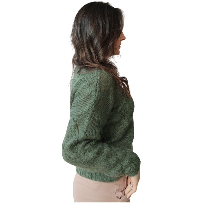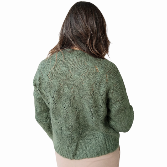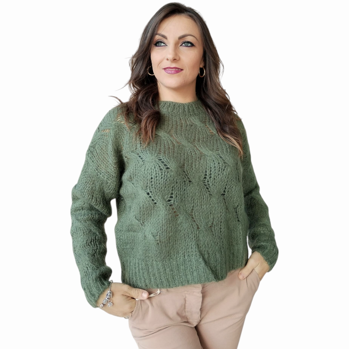 Maglia donna KONTATTO misto lana Mohair girocollo lavorazione a trecce