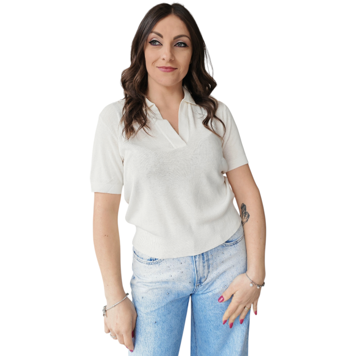 Cookie policyPolo donna GIANNI LUPO misto lino crop manica corta colletto a V senza bottoni (XS - Bianco)