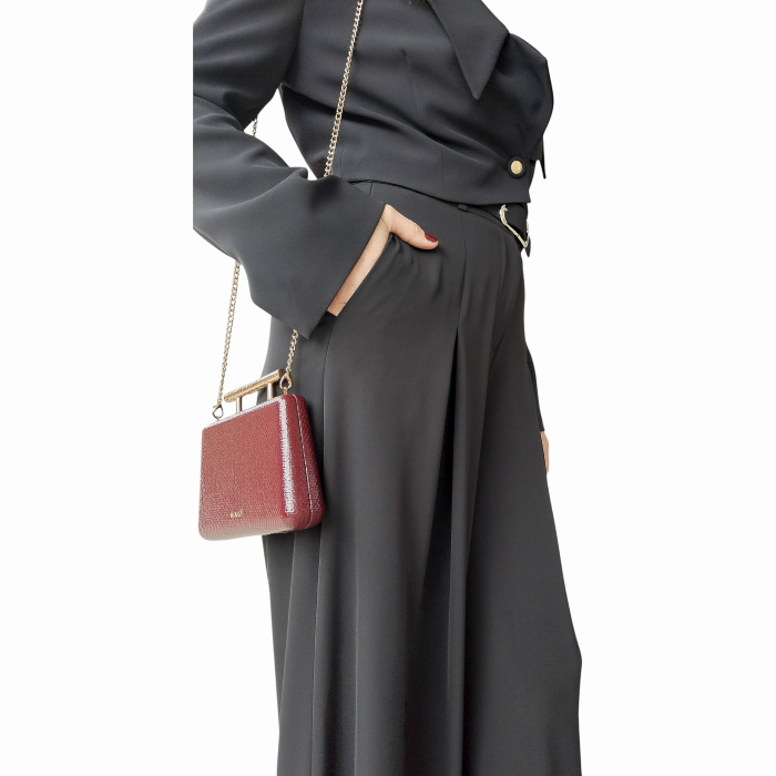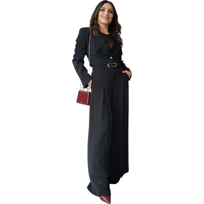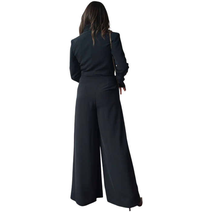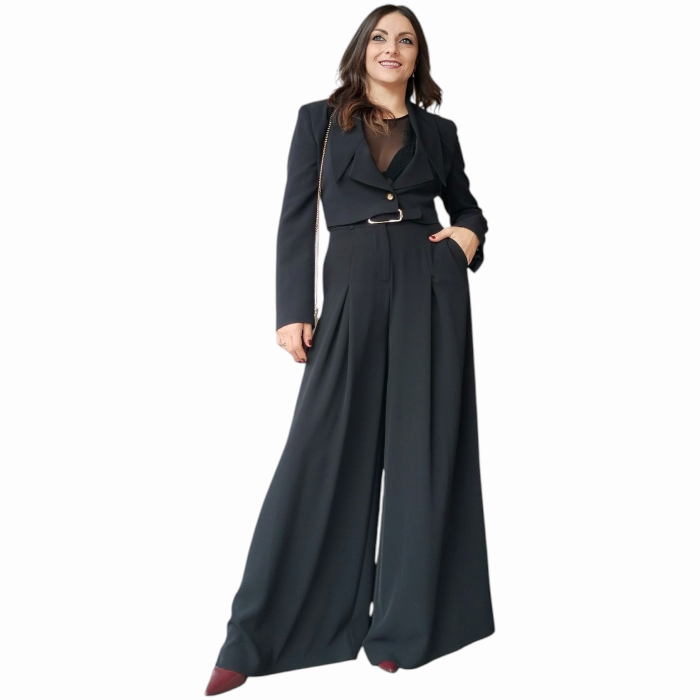 Tailleur IMPERIAL blazer cropped monopetto e pantaloni ampi vita alta (XS - Nero)