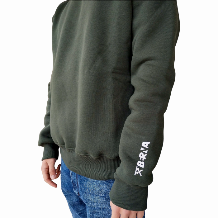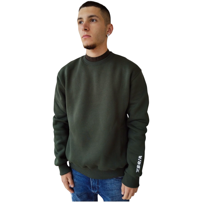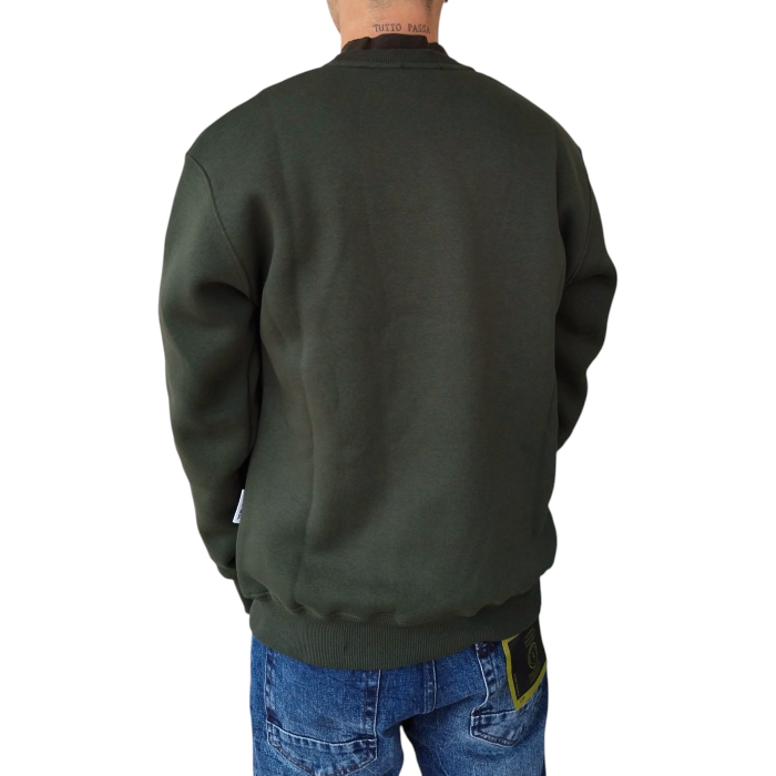 Felpa uomo BERNA regular fit in misto caldo cotone girocollo basic (M - Verde militare)