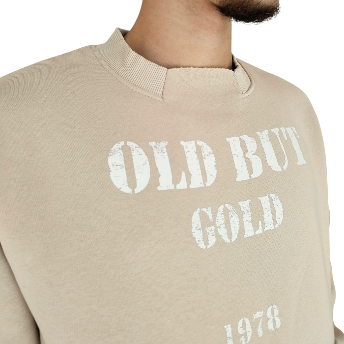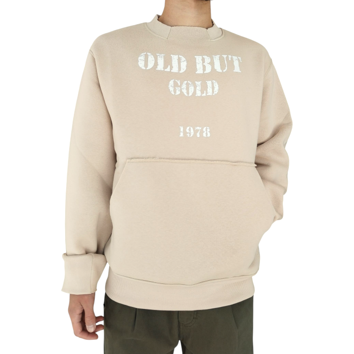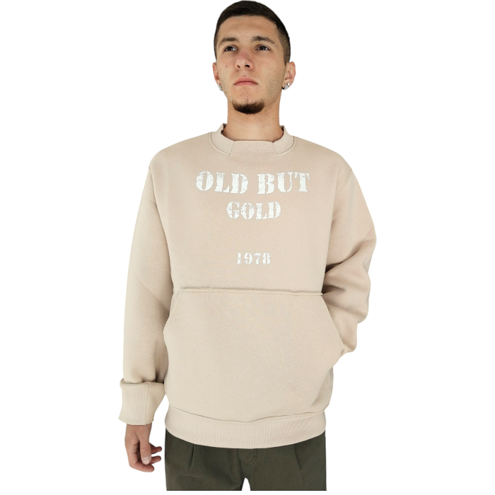 Felpa uomo IMPERIAL in caldo cotone girocollo con stampa e tasca centrale (L - Sabbia)