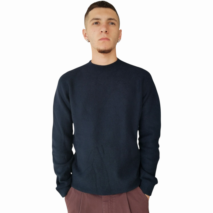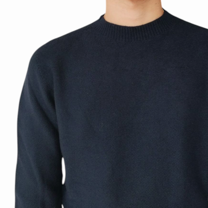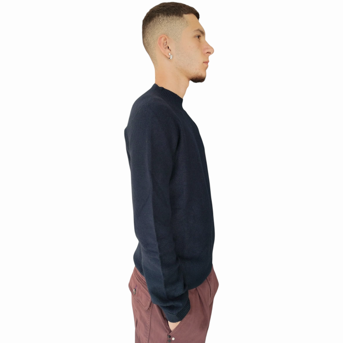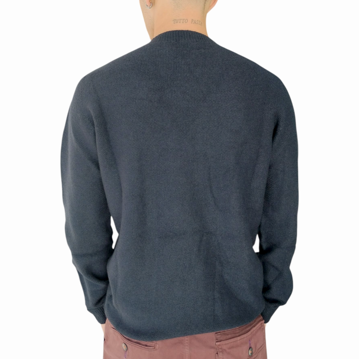 Maglia uomo BERNA girocollo accollato lavorazione punto riso tessuto soft touch (S - Blu)