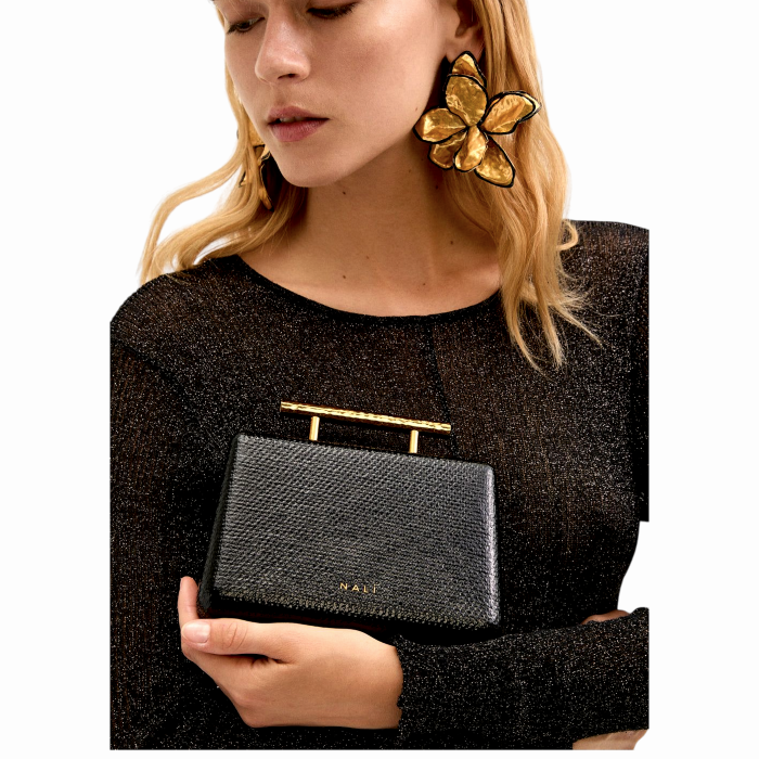 Borsa donna NALI' mod. Clutch Ivy rigida effetto martellato con manico dorato
