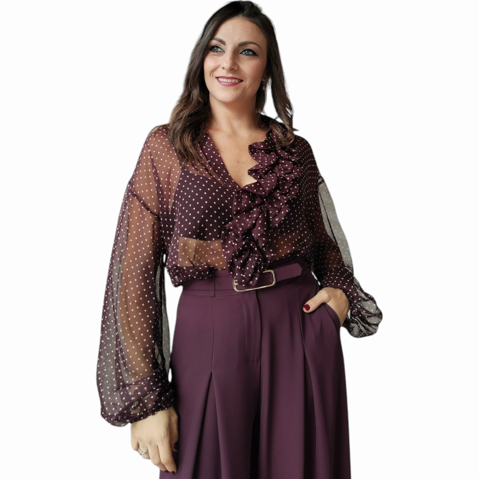Camicia donna IMPERIAL oversize colletto classico rouge anteriore maniche lunghe