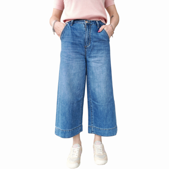 Jeans donna GIANNI LUPO coco wide cropped medium wash gamba ampia