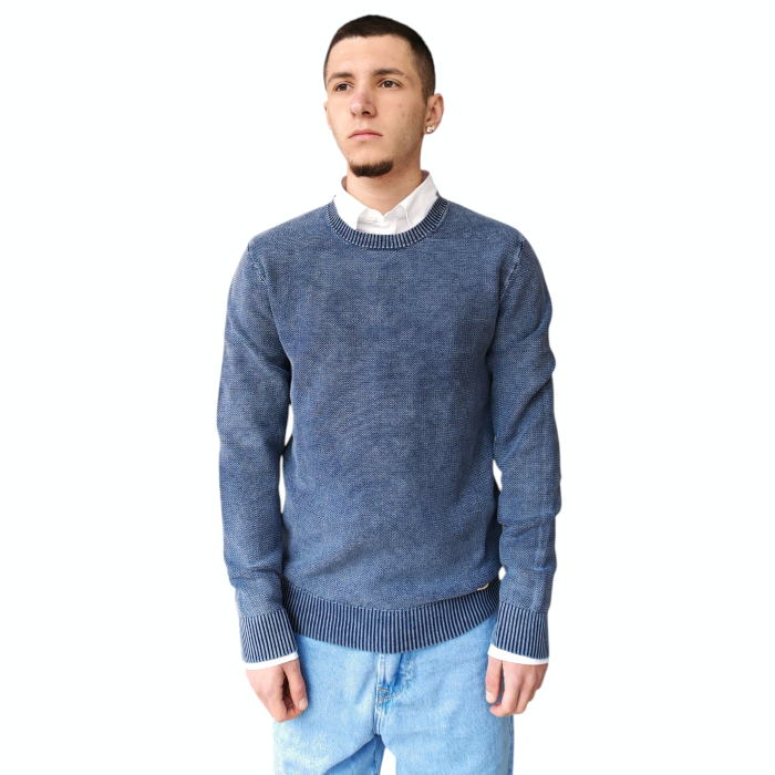 Maglia uomo GIANNI LUPO 100% cotone lavorazione intreccio effetto used (M - Blu Navy)