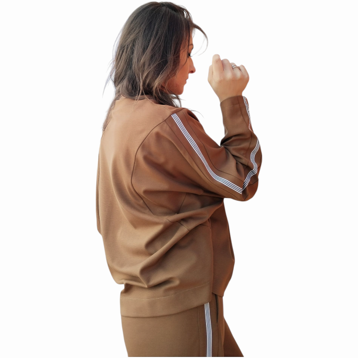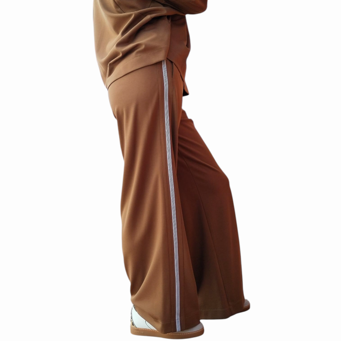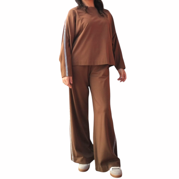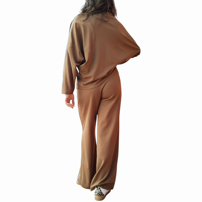 Tuta donna IMPERIAL felpa girocollo e pantalone palazzo con cintura a fascia (XS - Cognac)