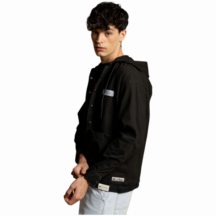 Felpa uomo CAT (Caterpillar) oversize in cotone Ripstop con cappuccio e tasche (S - Nero)