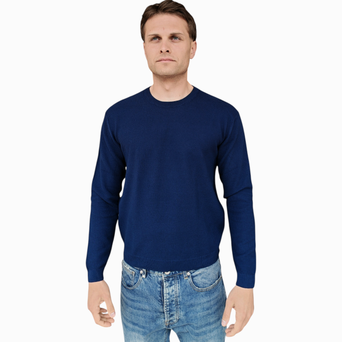 Maglia uomo IMPERIAL 100% cotone lavorazione chicco riso girocollo (L - Blu pantone)