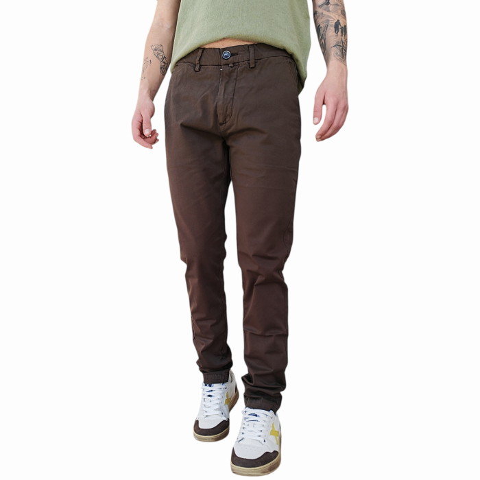Pantalone uomo GIANNI LUPO slim fit basic in fresco cotone tasche America (42 - Caffè)