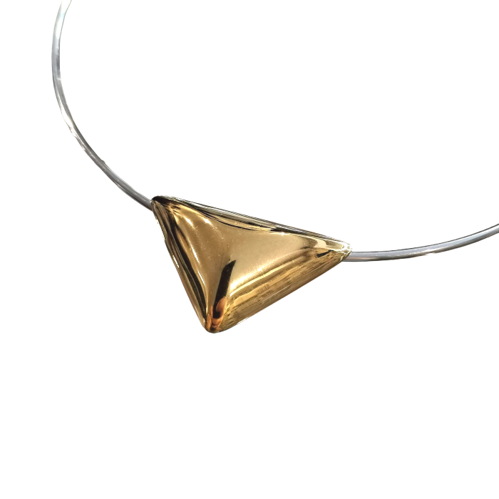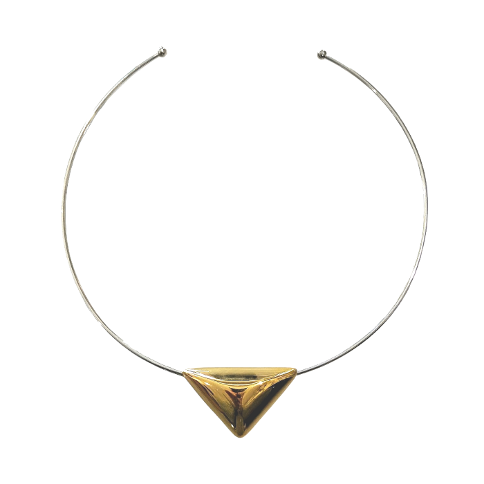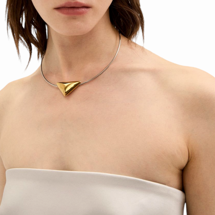 Collana donna NALI' rigida in acciaio inox mod. Choker con elemento a triangolo (TAGLIA UNICA - Oro/Grigio)