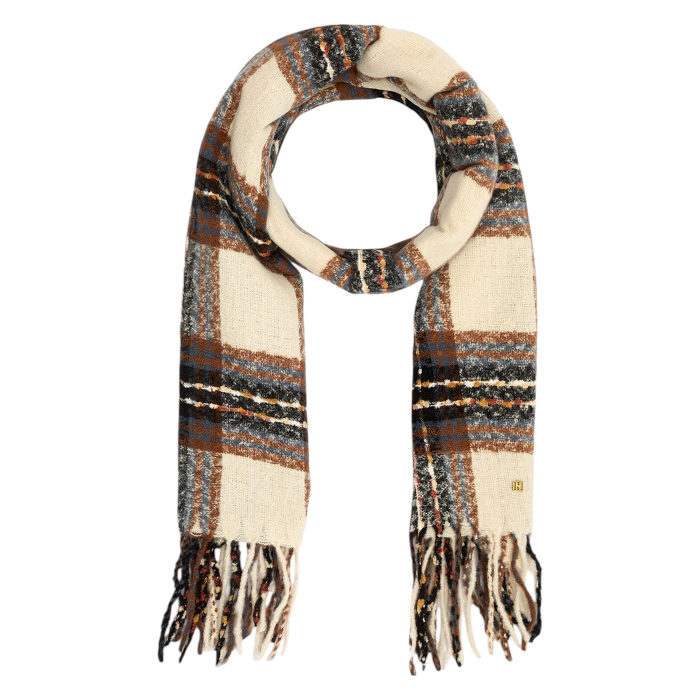 Sciarpa donna NALI' modello Gery check con frange 60X180 cm (TAGLIA UNICA - Panna/Marrone)