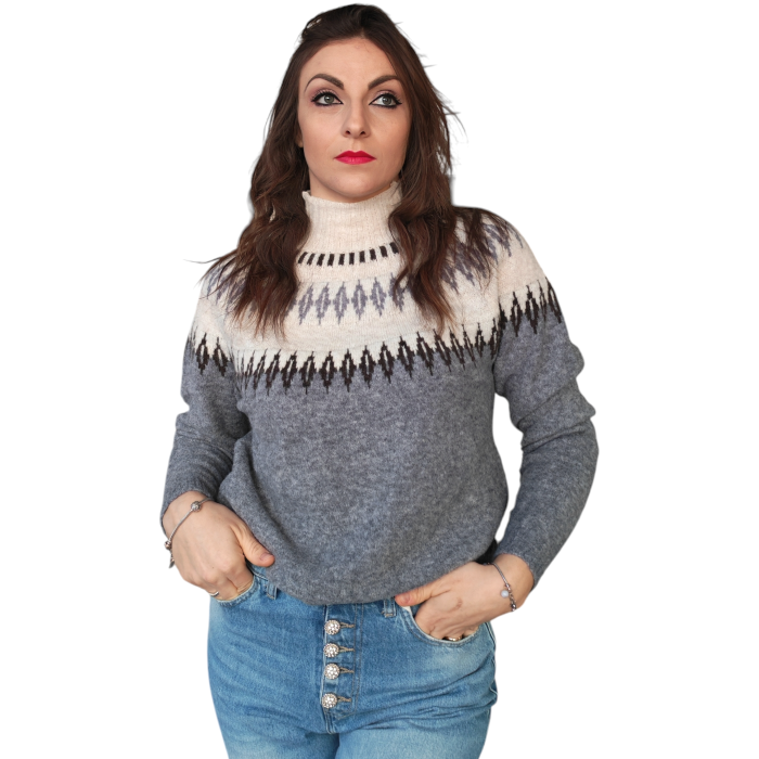 Maglia donna SUSY MIX collo cratere alto fantasia misto lana
