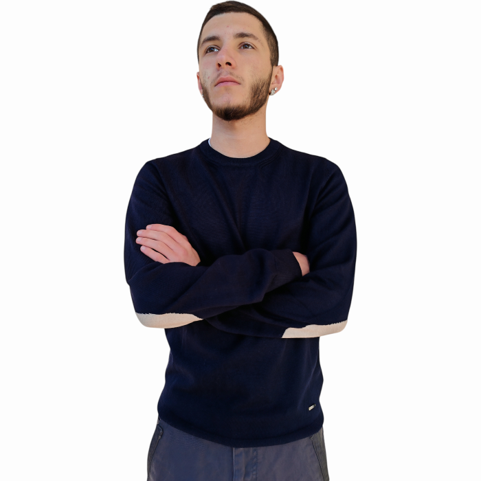 Maglia uomo GIANNI LUPO girocollo misto lana con toppe ai gomiti