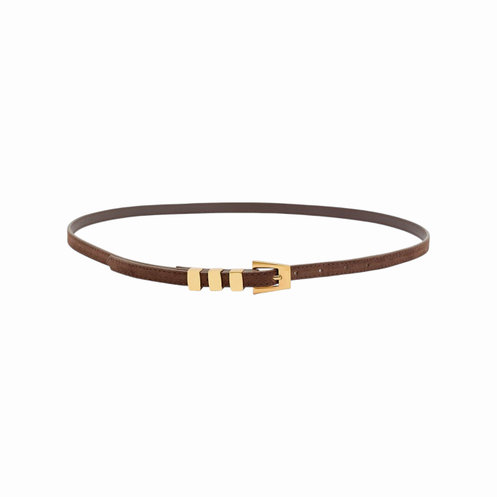 Cintura dal design minimal con fibbia geometrica, pensata per esaltare la vita con raffinatezza. Un dettaglio ricercato che impreziosisce con discrezione sia outfit formali che abbinamenti quotidiani. Tessuto morbido scamosciato (85% POLIURETANO, 15% LEGA DI ZINCO). Misura 1.2 cm di larghezza per 105 cm di lunghezza. Un accessorio curato in ogni minimo dettaglio da uno dei brand (NALI') più in voga del momento che fa della qualità, bellezza e prezzo il suo punto di forza, citato spesso sui migliori magazine e all'interno delle più prestigiose manifestazioni di moda.