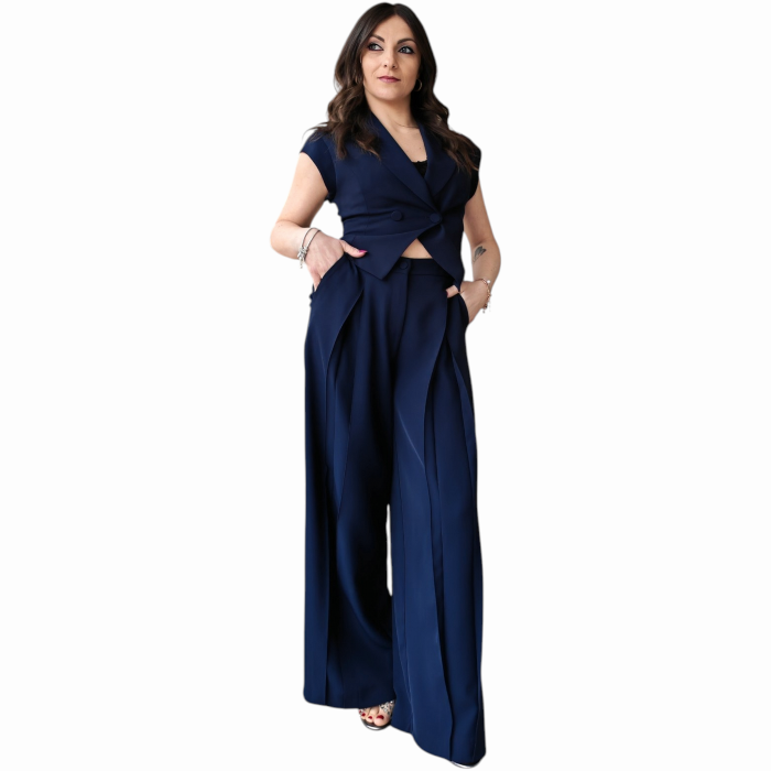 Completo donna IMPERIAL gilet doppiopetto smanicato pantalone palazzo con pinces