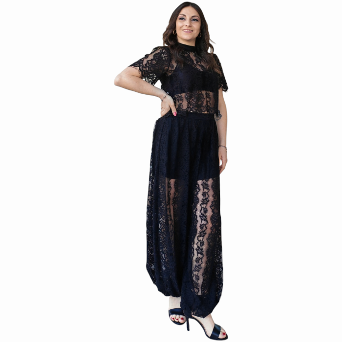 Completo donna IMPERIAL misto cotone in pizzo top corto pantalone palazzo base elastica