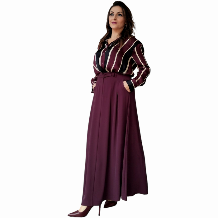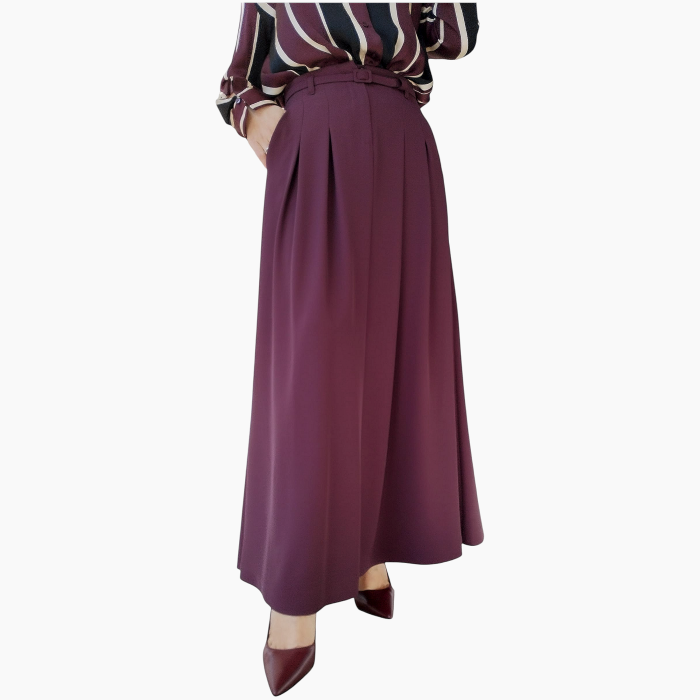 Gonna IMPERIAL lunga plissettata con cintura (M - Prugna)