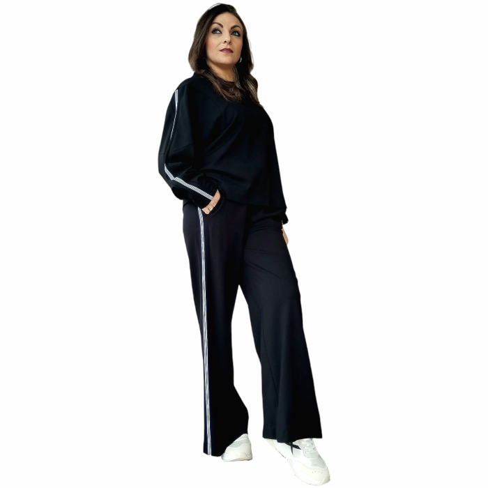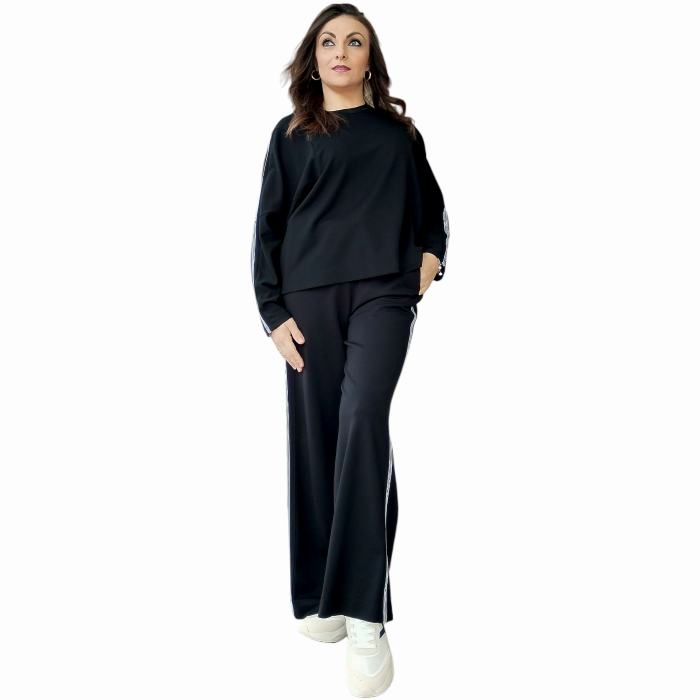 Tuta donna IMPERIAL felpa girocollo e pantalone palazzo con cintura a fascia