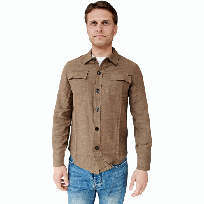 Overshirt uomo GIANNI LUPO in misto fibra vegetale (ramie) con tasche frontali (L - Marrone)