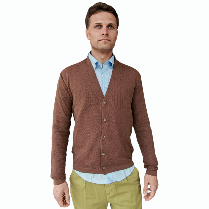 Cardigan uomo BERNA misto cotone lavorazione punto riso scollo a V (L - Caffè)
