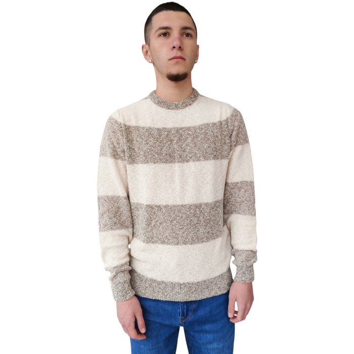 Maglia uomo BERNA girocollo tema a fasce misto cotone organico effetto bouclè