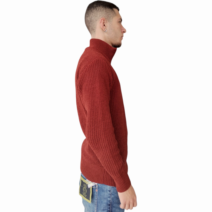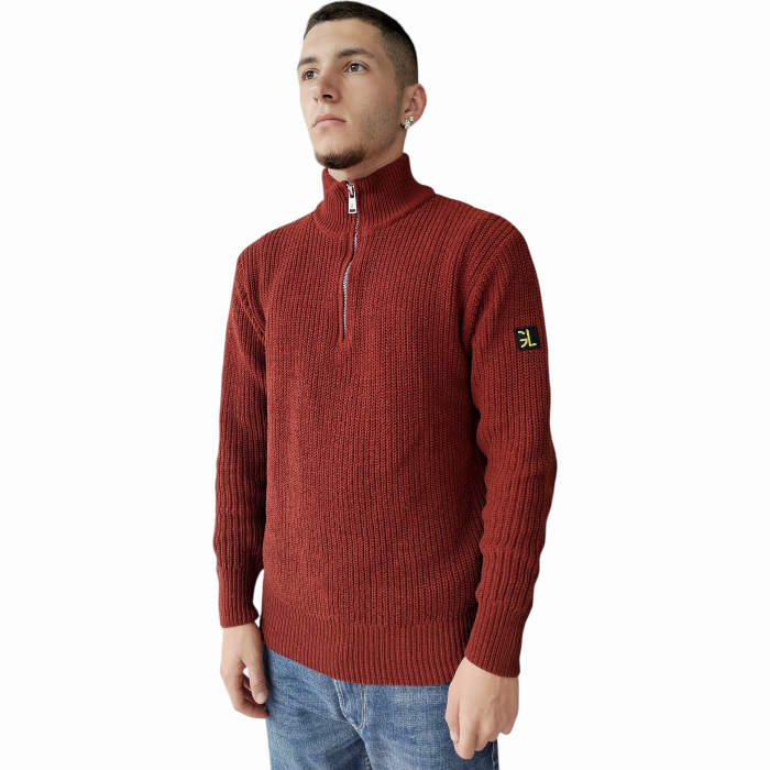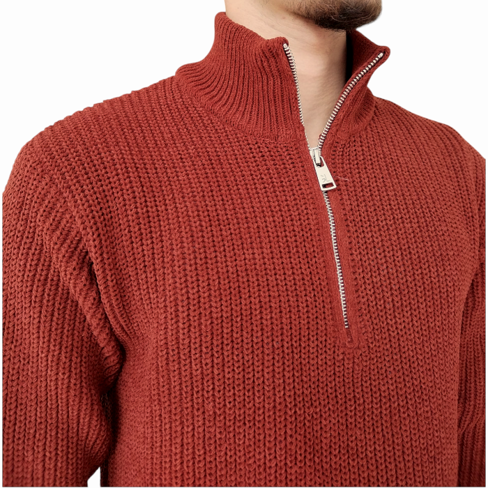 Maglia uomo GIANNI LUPO collo ad imbuto con zip e lavorazione a coste verticali (XL - Coccio)