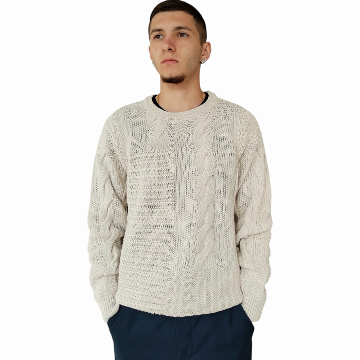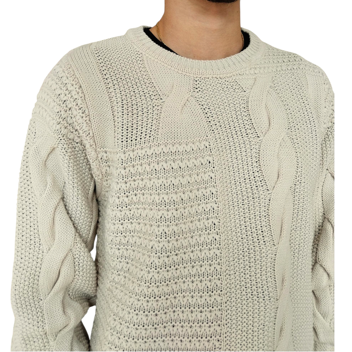 Maglia uomo IMPERIAL girocollo lavorazione a trecce (XL - Panna)