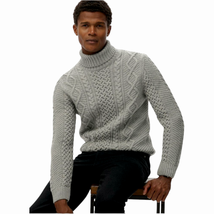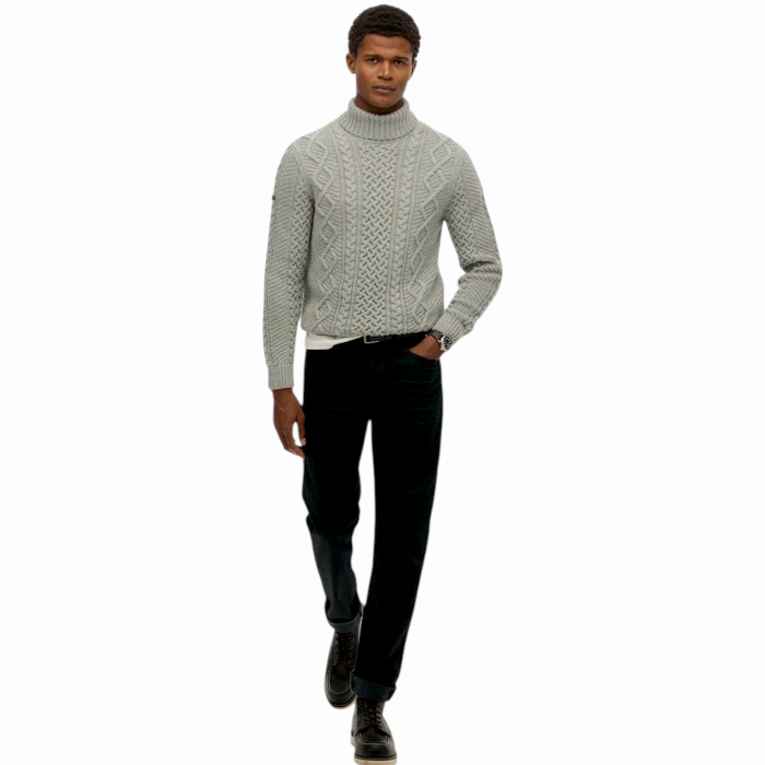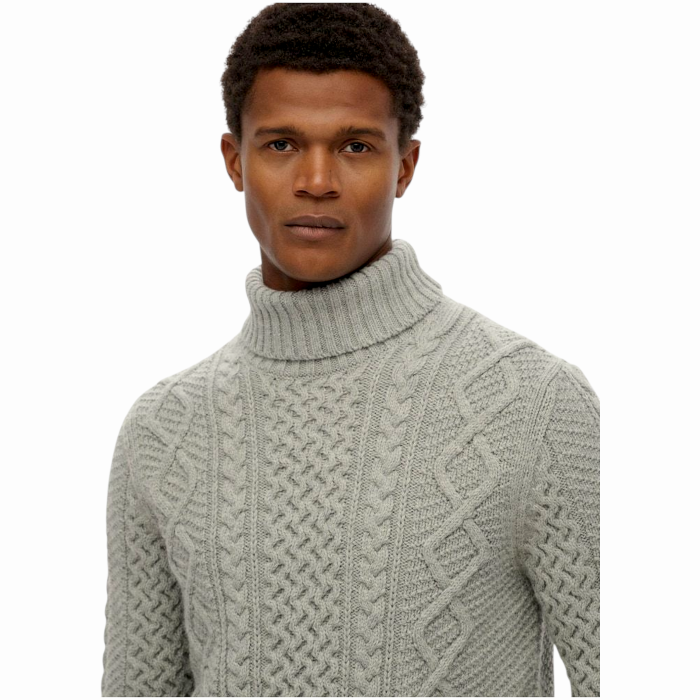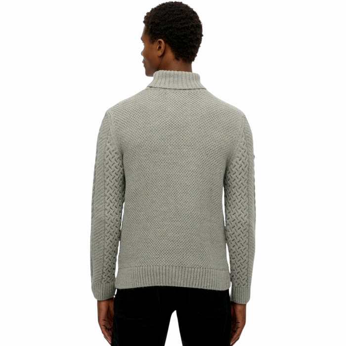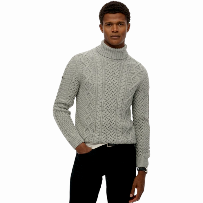Maglia uomo SUPERDRY misto lana collo alto lavorazione trecce e chicco riso (M - Grigio)