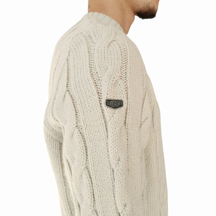 Maglia uomo SUPERDRY misto lana modello Jacob girocollo a trecce (XL - Ecru)