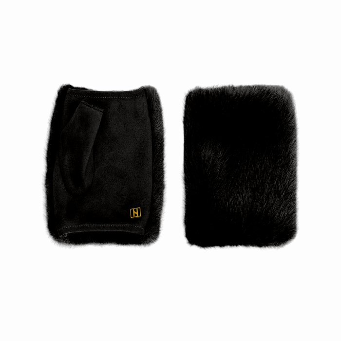 Guanti donna NALI' in ecopelliccia con punta delle dita scoperte (TAGLIA UNICA - Nero)