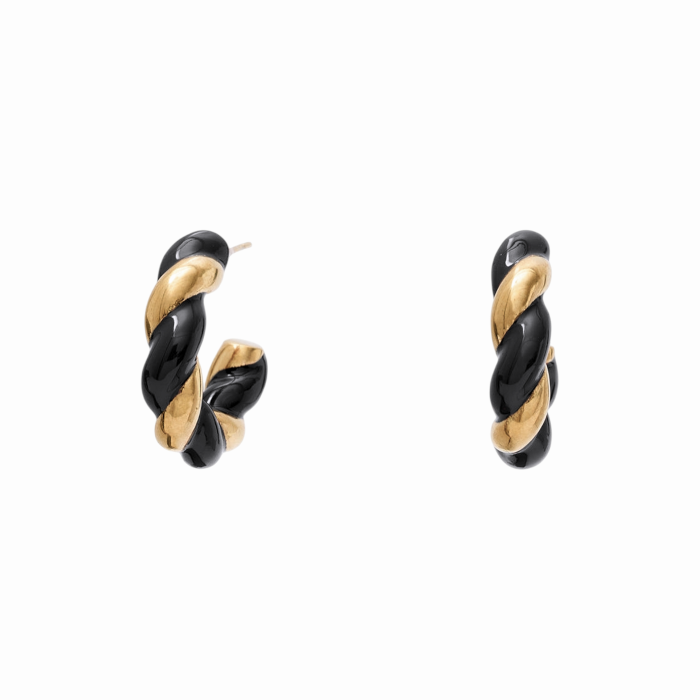 Orecchini donna NALI' a cerchio intrecciato bicolor modello Leah (TAGLIA UNICA - Oro/Nero)